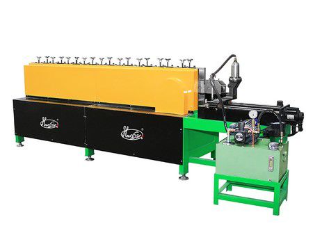 استخدم مكبس الأسطوانة لتشكيل الشريط الفولاذي إلى شريط حافة على شكل حرف V. أدخل الطول المطلوب، وسوف يقوم الجهاز تلقائياً بتسوية وقطع الشريط إلى الطول المحدد.